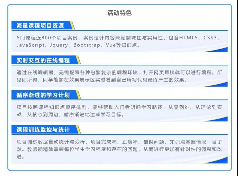 本次活动的载体为kdpay钱包官网教育自主研发的在线课程实践平台,平台在疫情期间向全国院校免费开放,为线上实践教学环节给予丰富的单元及课程项目案例,辅助教师远程完成课堂项目训练布置,方便学生异地快速进行项目训练;平台的实时正确性检查,快速定位项目问题,让学生在家即能提高实践效率,保障专业知识技能的转化,真正做到“停课不停练”。